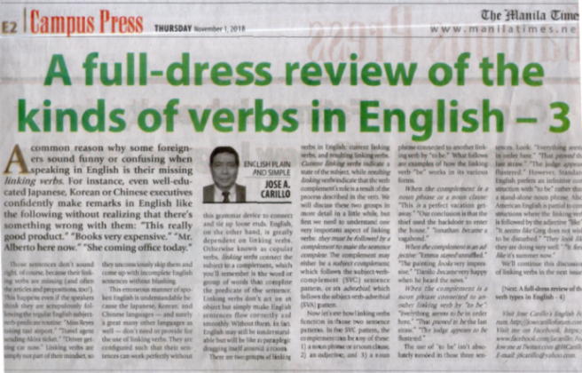 This essay first appeared under the title “Verbs to tie up loose ends” in the weekly column “English Plain and Simple” by Jose A. Carillo in The Manila Times