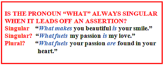 1. You Asked Me This Question: “The pronoun ‘what’ isn’t always singular when it leads off an assertion” (July 2, 2020)